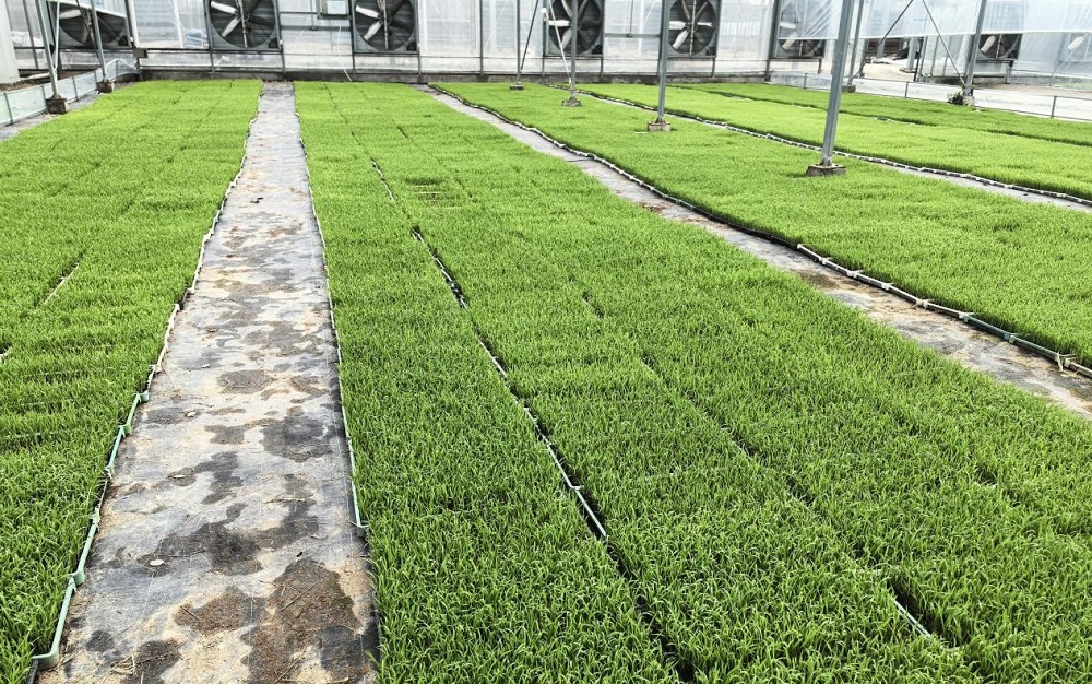 在高標準糧油生產(chǎn)基地的育秧工廠內(nèi),全自動播種流水線開足馬力,工人們裝土、灑水、播種、覆土......一氣呵成。一個個標準化秧盤被整齊碼放成垛,隨后送入恒溫育秧大棚進行暗化催芽。目前,秧苗出苗率達99%,長勢喜人,預計4月上旬便可移栽大田。今年頭季目標產(chǎn)量700公斤,全年畝產(chǎn)瞄準1000公斤,力爭打造蘇州地區(qū)再生稻高產(chǎn)新標桿。