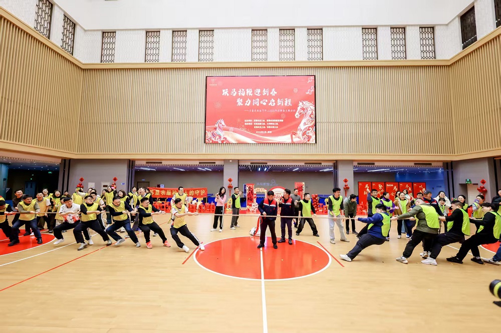 風(fēng)采表演結(jié)束后,活動進入趣味運動環(huán)節(jié)?!胺€(wěn)中求進”“全力以赴”“步步高升”“繩采飛揚”“同心共濟”“青苗接力”等項目集競技、協(xié)作與趣味于一體,各參賽隊你追我趕、配合默契,現(xiàn)場歡呼聲、加油聲此起彼伏。其間穿插的《瘋狂馬拉松》《馬到成功》等大屏互動節(jié)目,進一步點燃職工參與熱情。壓軸項目“眾志成城”拔河比賽將活動推向高潮,參賽隊伍全力以赴、奮勇拼搏,場下吶喊助威聲浪迭起。經(jīng)過激烈角逐,米業(yè)一隊、農(nóng)服隊、農(nóng)發(fā)一隊?wèi){借總成績前3名分別拿下趣味運動比賽團體冠軍、亞軍和季軍。